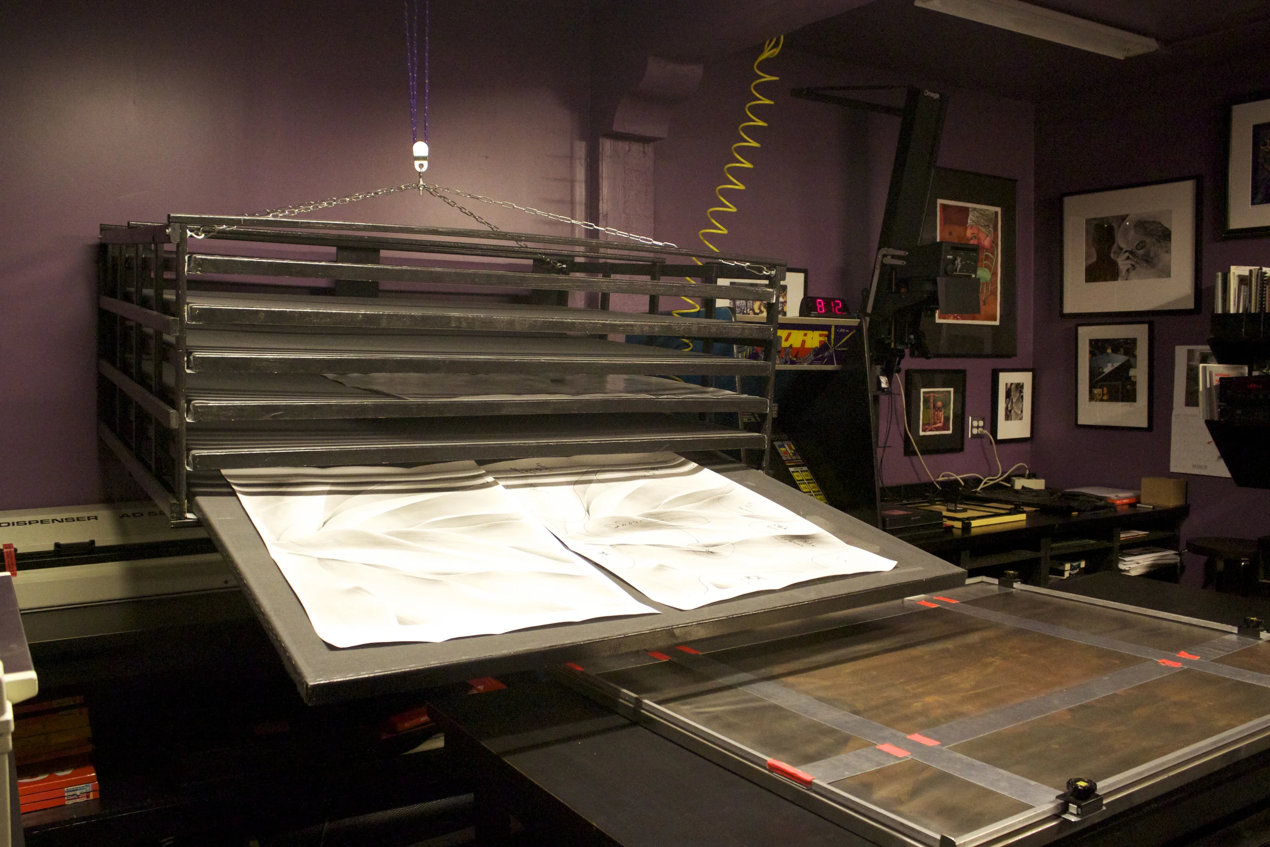 240 square feet of screened print drying racks. 660 watt roof top air filtration system.